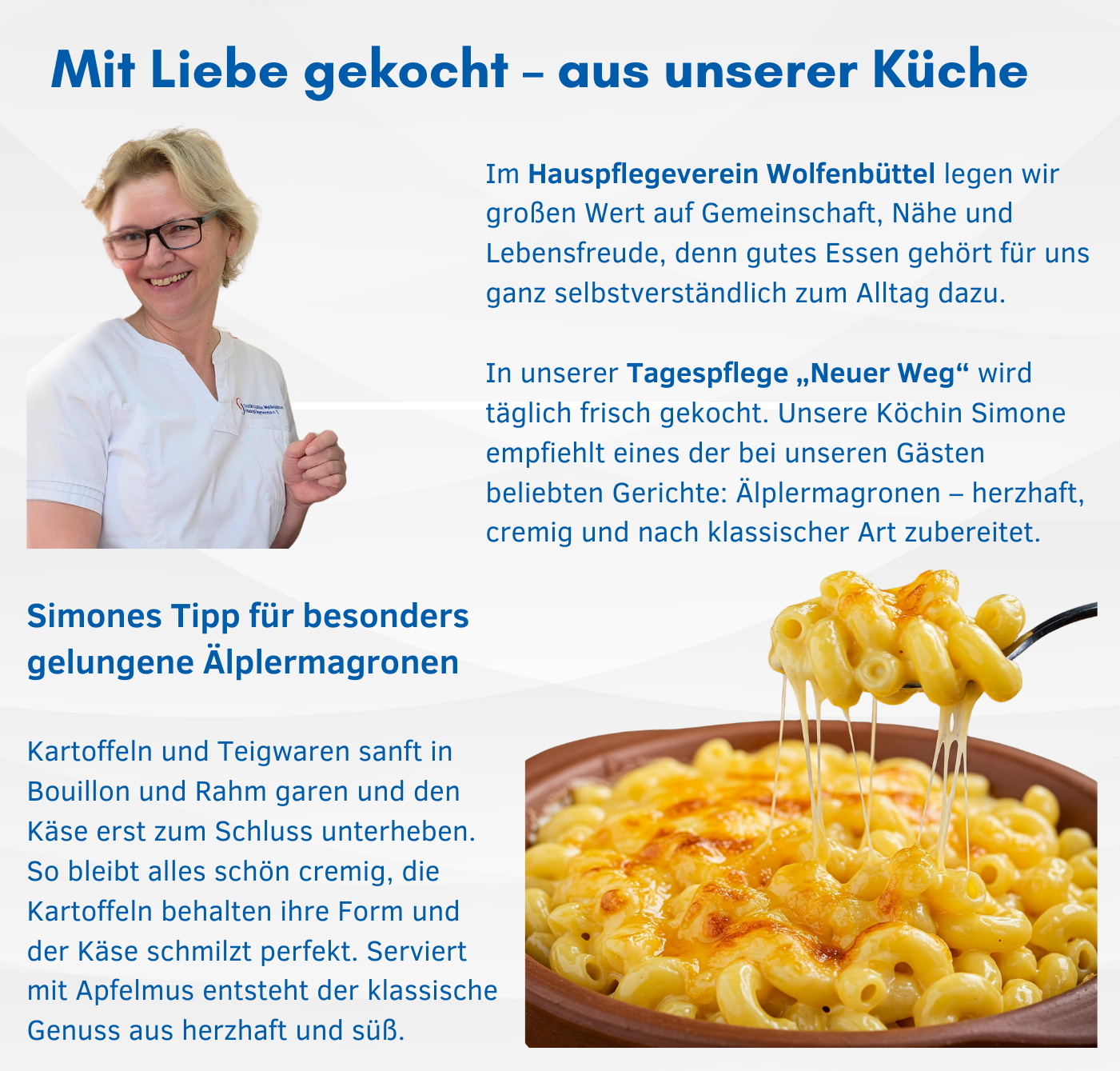 | Zutaten 4 Zwiebeln4 Knoblauchzehen 800 g. festkochende Kartoffeln 300 g. Speckwürfel 10 dl Gemüsebouillon 4 dl Halbrahm 500 g Teigwaren (z. B. Älplermagronen) 129 g geriebener Gruyère 1 TL Salz Priese Pfeffer |